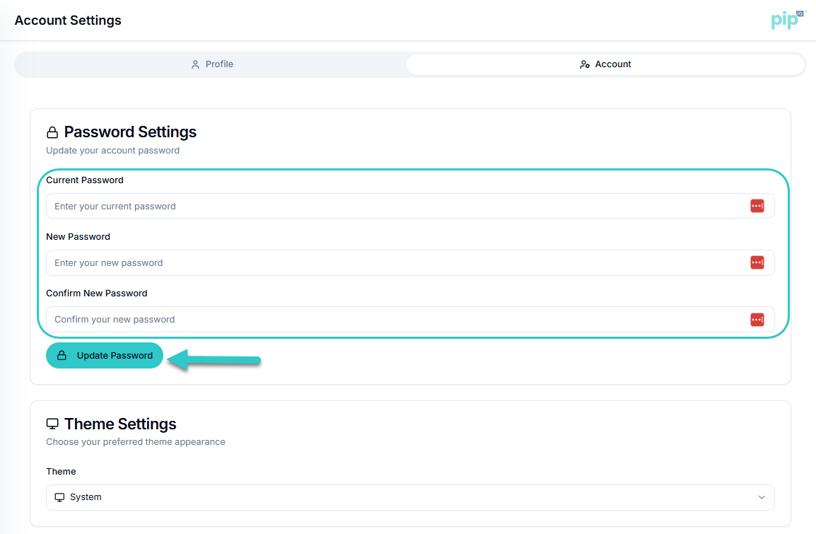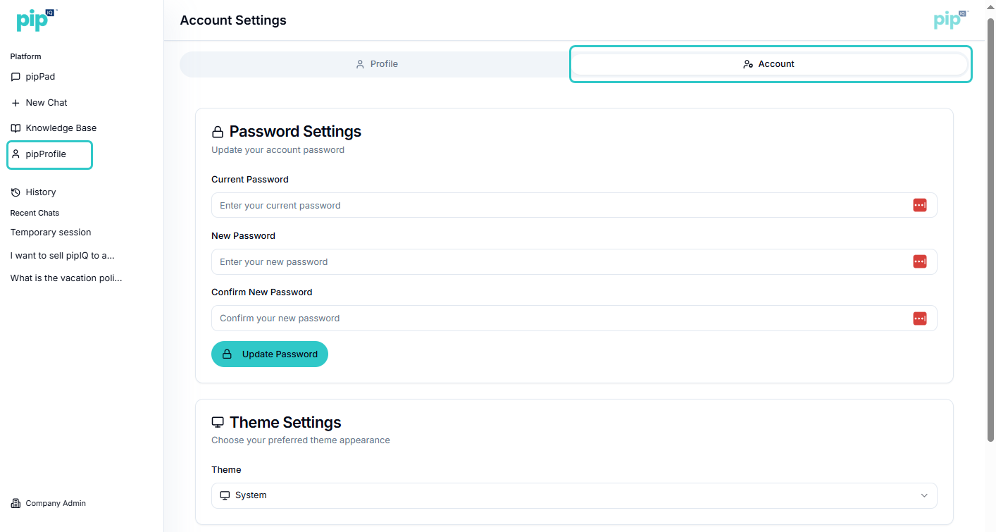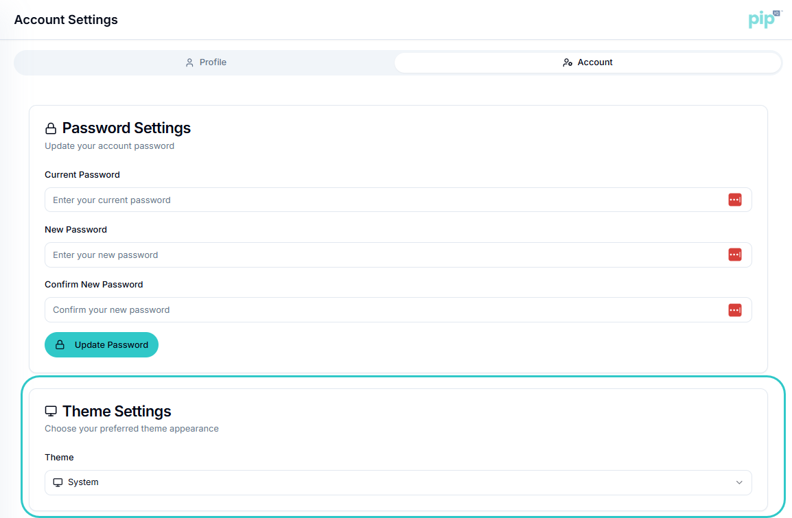 pipProfile: User & Account Settings