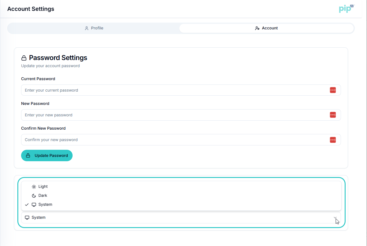 By default, pipIQ matches your system or device’s theme preference.